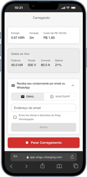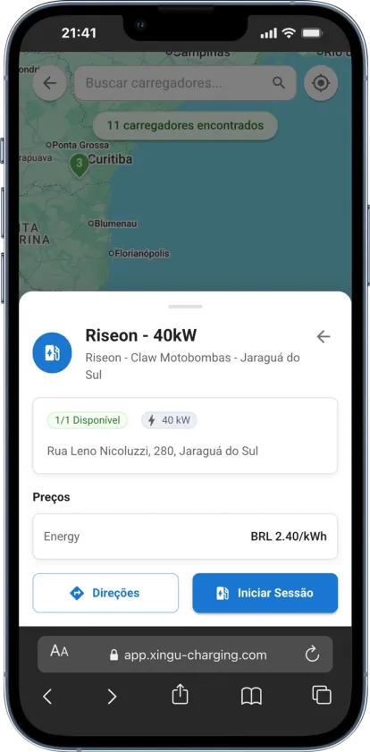 A Xingu é totalmente self-service — você se cadastra, adiciona seus carregadores e começa a operar imediatamente. Sem ligações, sem espera. Nossos preços estão disponíveis no nosso site, então você sempre sabe exatamente quanto vai pagar.